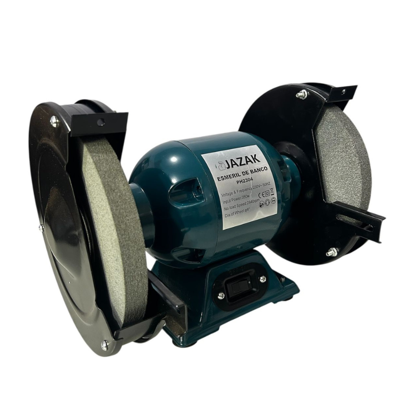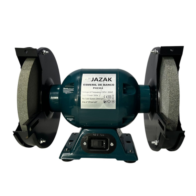 La amoladora de banco Jazak es compacta y potente, ideal para trabajos de afilado, desbaste y pulido en talleres y uso doméstico. Su motor de 350W asegura rendimiento confiable y durabilidad.