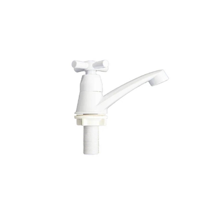 Grifería blanca de mesada con llave en cruz