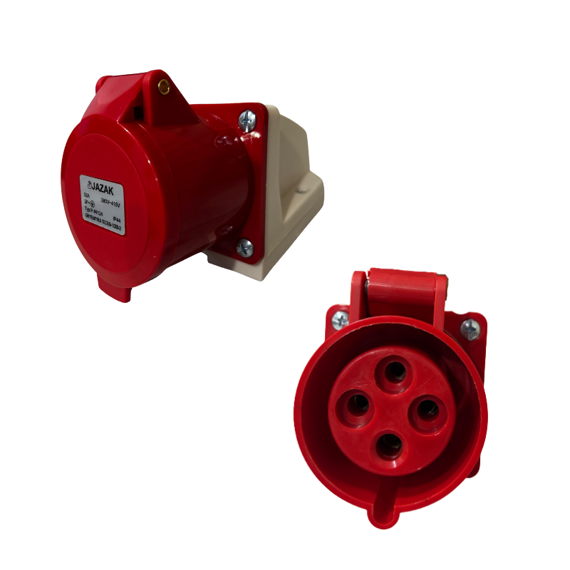 Una ficha hembra industrial 3x32A es un conector eléctrico robusto, con 3 polos (fase), 1 polo de tierra (T) y 32 Amperios de capacidad nominal, diseñado para aplicaciones industriales y de alto consumo, ya que soporta mayor corriente que los tomacorrientes convencionales y es resistente a condiciones adversas como humedad.