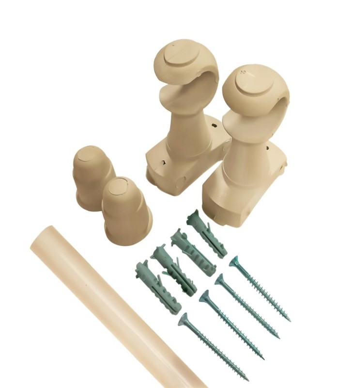 Es un conjunto de elementos diseñados para facilitar la instalación y montaje de cortinas simples hechas de plástico. Estos kits suelen incluyen los componentes básicos necesarios para colgar una cortina, como rieles, soportes, ganchos y/o anillos de plástico. Se utilizan principalmente en hogares, oficinas u otros espacios donde se requiere una solución económica y práctica para cubrir ventanas o separar áreas. Las cortinas de plástico son comunes en entornos donde se necesita una barrera ligera y fácil de limpiar, como en baños, cocinas, áreas de lavandería o talleres. También pueden ser utilizadas en exteriores, en porches o patios, para proteger del viento o del sol.