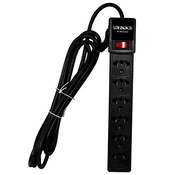 Se refiere a un enchufe múltiple con 6 tomas de corriente eléctrica. Estas zapatillas suelen ser dispositivos que permiten conectar varios dispositivos electrónicos o electrodomésticos a una sola toma de corriente, lo que es útil cuando hay una escasez de enchufes disponibles. Su propósito principal es proporcionar una solución conveniente para conectar múltiples dispositivos electrónicos o electrodomésticos en un solo lugar, sin tener que depender de un número limitado de tomas de corriente. Esto es particularmente útil en hogares, oficinas o cualquier lugar donde se necesite alimentación eléctrica para múltiples dispositivos simultáneamente.